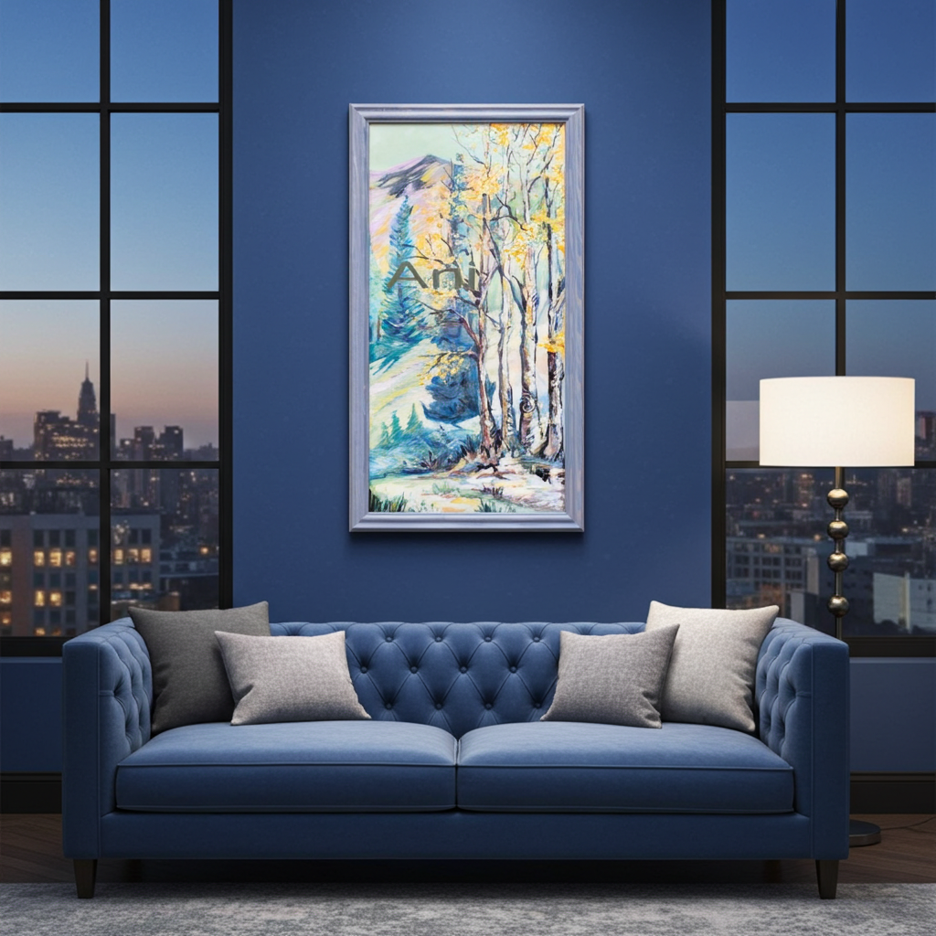 Canvas framed 15"x30": ready to ship. Handpainted canvas giclee. Canvas is mounted with archival methods on acid free foam. No glass. Easy shipping with hard stained plywood on the back of canvas.